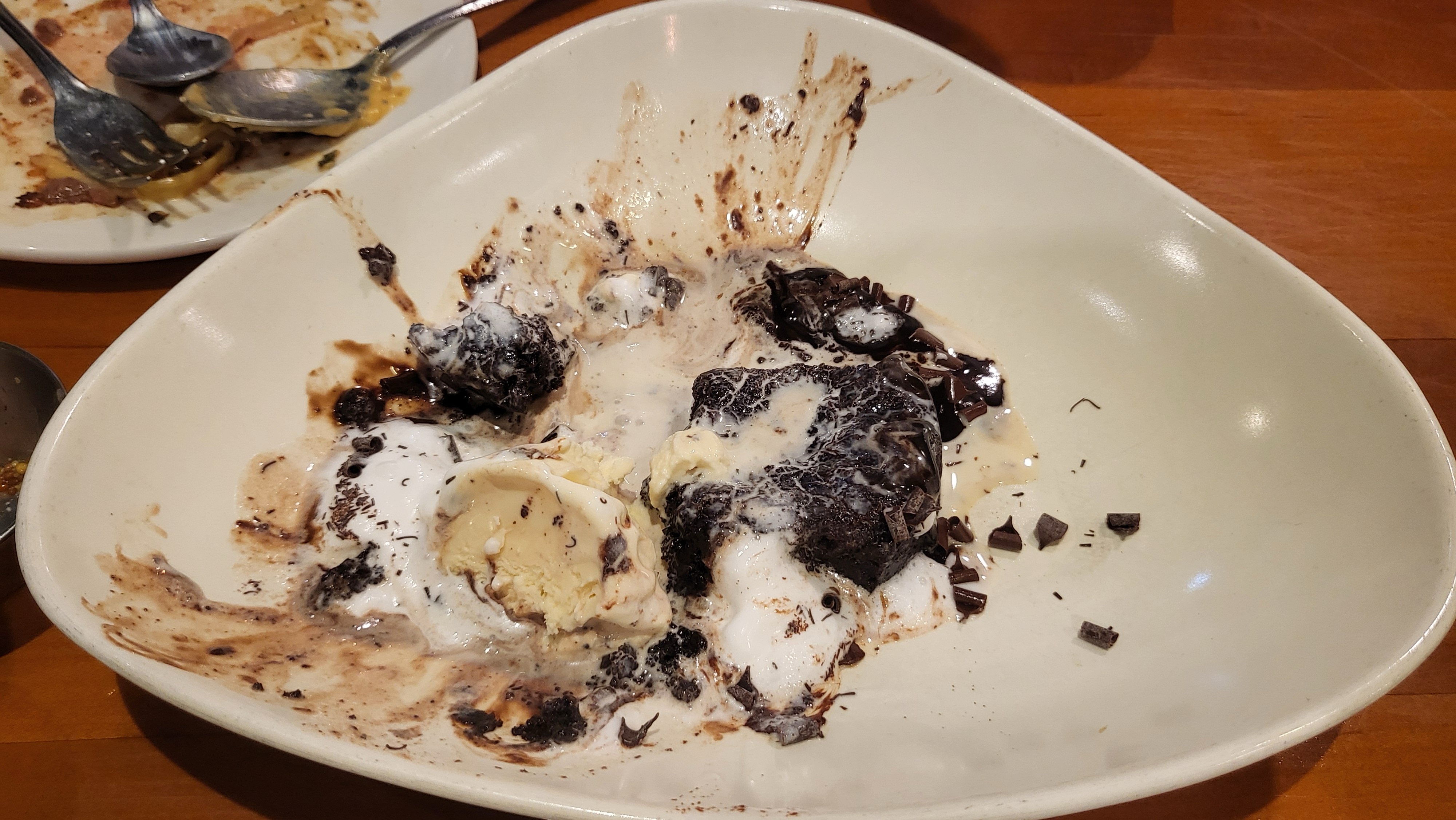 필사적으로 브라우니 케이크를 피해서 아이스크림만 먹었다.