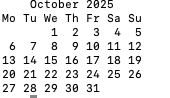 | calendar | 달력 출력 및 날짜 관련 기능 | import calendar calendar.prmonth(2025, 10) |