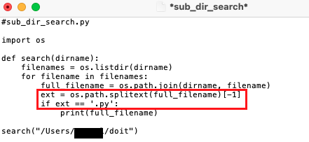 ![]() ※ os.path.splitext는 파일 이름에서 확장자만 추출하는 코드 ex) os.path.splitext('test.py')를 실행하면 ('test', '.py')라는 튜플을 반환 os.path.splitext(full_filename)[-1]은 해당 파일의 확장자 '.py'인 경우만 출력 |
