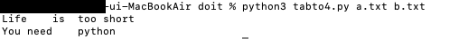 | 7 | 터미널 두잇에서 코드 입력 > python3 tabto4.py a.txt b.txt |