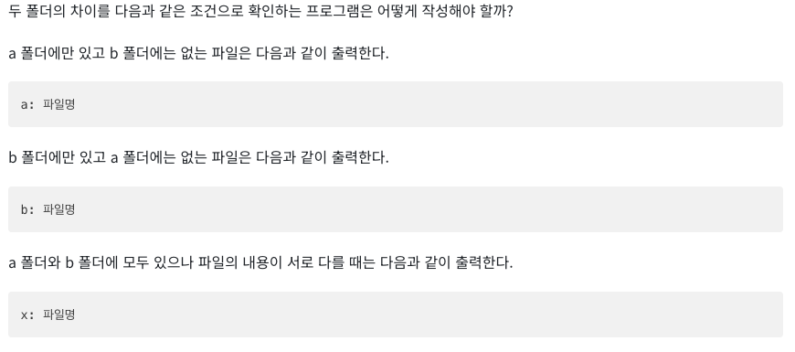 | 결과 속성 | - left_only : 왼쪽 폴더에만 있는 파일 - right_only : 오른쪽 폴더에만 있는 파일 - common_files : 둘 다 있는 파일 - diff_files : 내용이 다른 파일 |