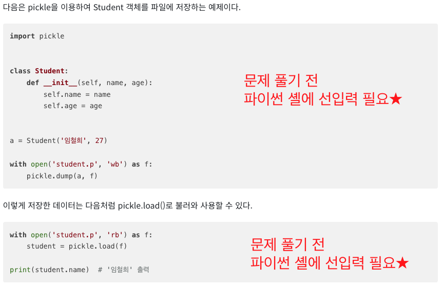 044. 객체를 파일로 저장하고 불러오려면? ― pickle(피클)