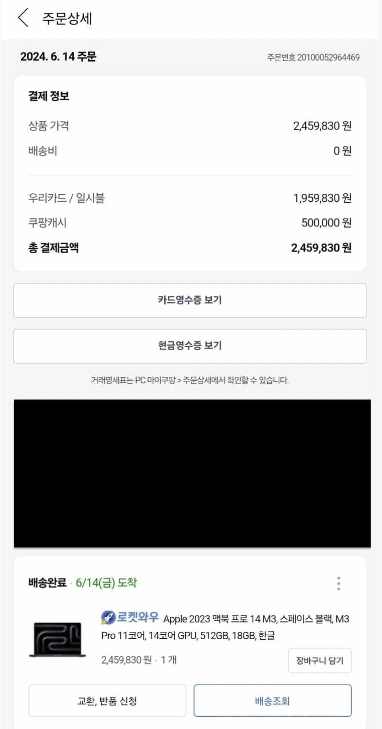 그동안 모은 쿠팡캐시랑 나머지는 신용카드로 미래의 나에게 빚을졌다.