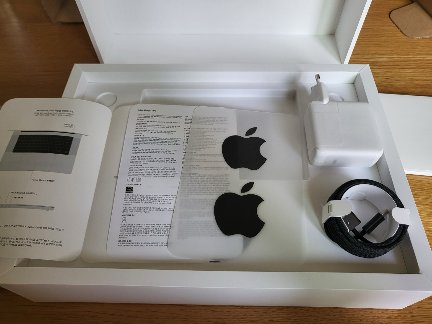 맥북과 스티커 그리고 충전기와 충전선이 전부다.