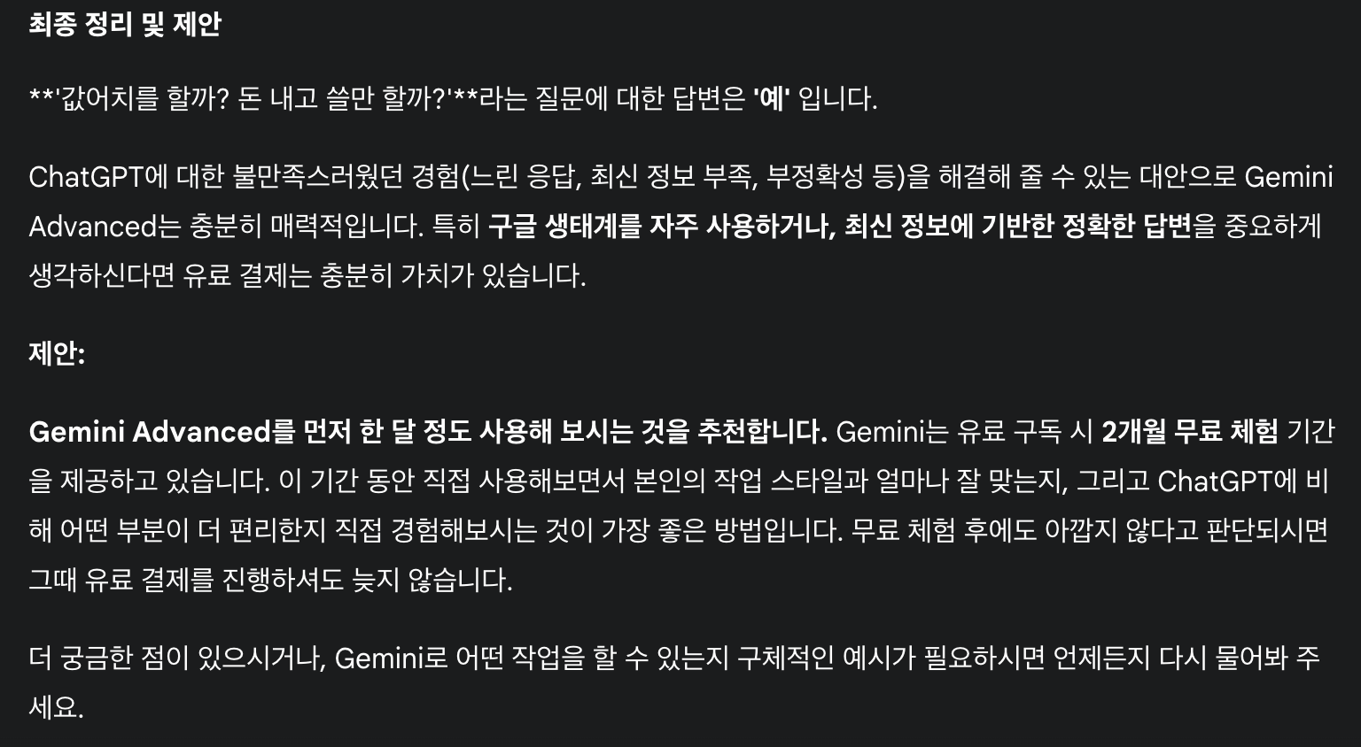 - 무료 버전과 Gemini Advanced(유료, GPT-4o급 성능)로 나눠져 있음