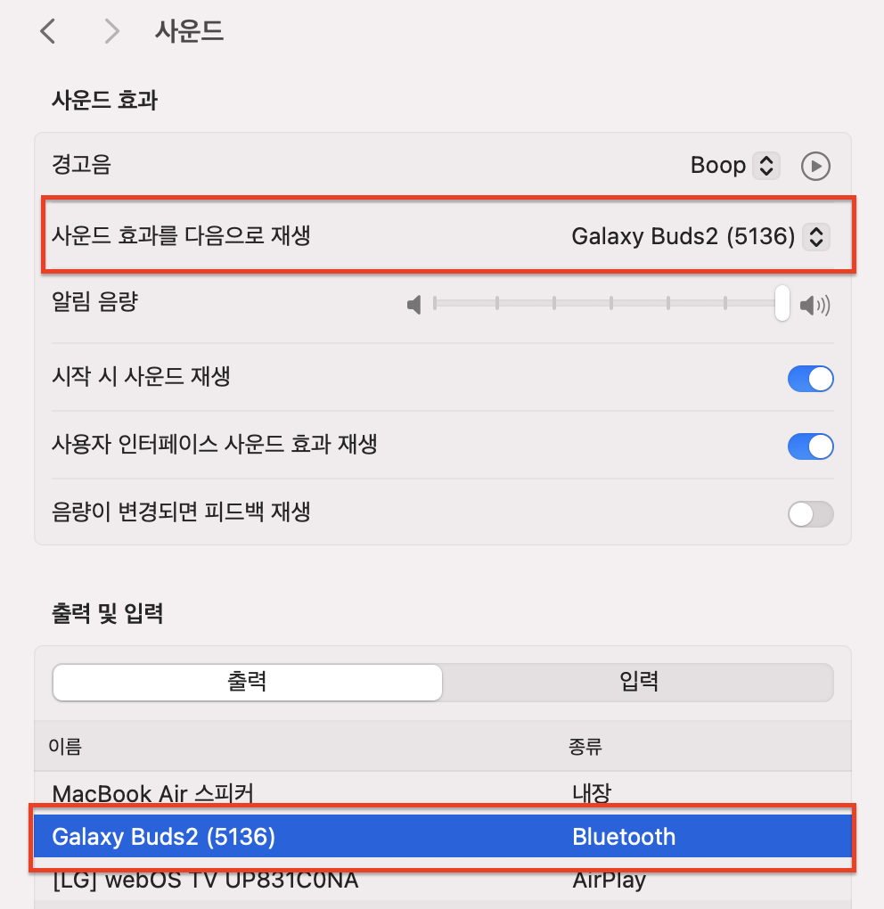 난 맥북을 사용하지만 이어폰은 갤럭시 버즈를 쓰고 있다.