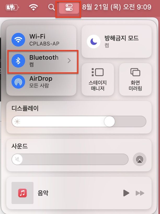 먼저, 내 맥북의 블루투스 연결 상태부터 확인해보자.